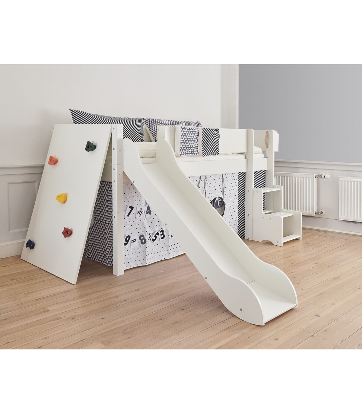 Manis-h LOKE 90 x 200 cm avec mur d’escalade et escalier Blanche-Neige