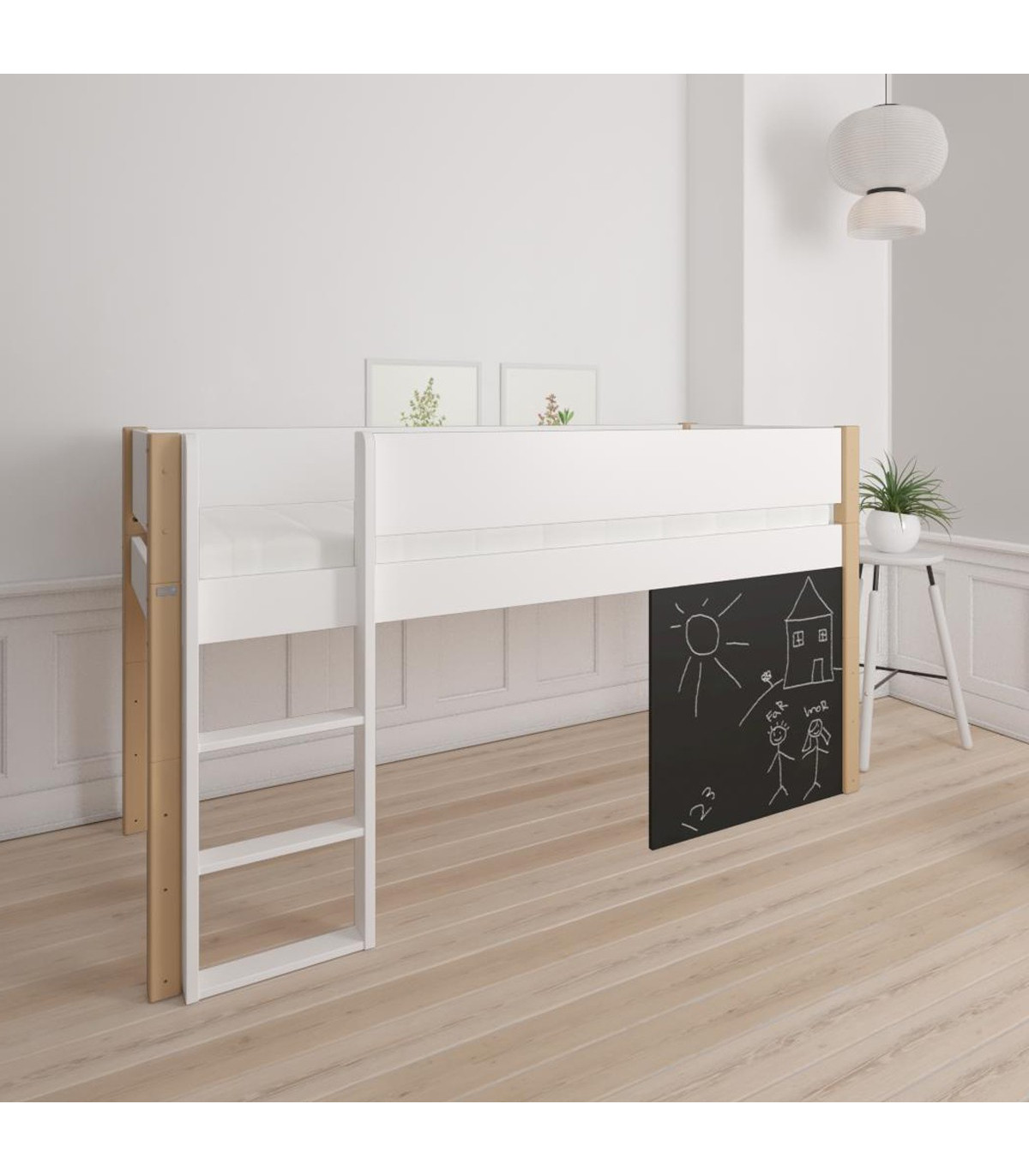 Manis-h Lit mi-hauteur DEA 90 x 200 cm, avec plateau de jeu Blanc neige avec poteau en hêtre