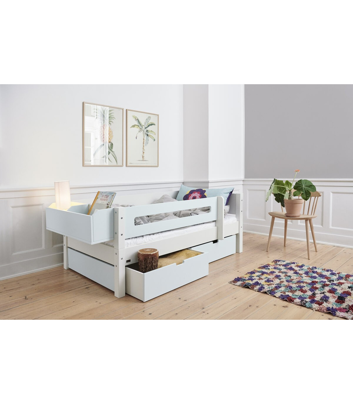 Pour plus de sécurité, ce lit est livré avec une protection contre les chutes 3/4, de sorte que l’enfant qui est encore trop petit pour un lit ouvert est toujours en sécurité.