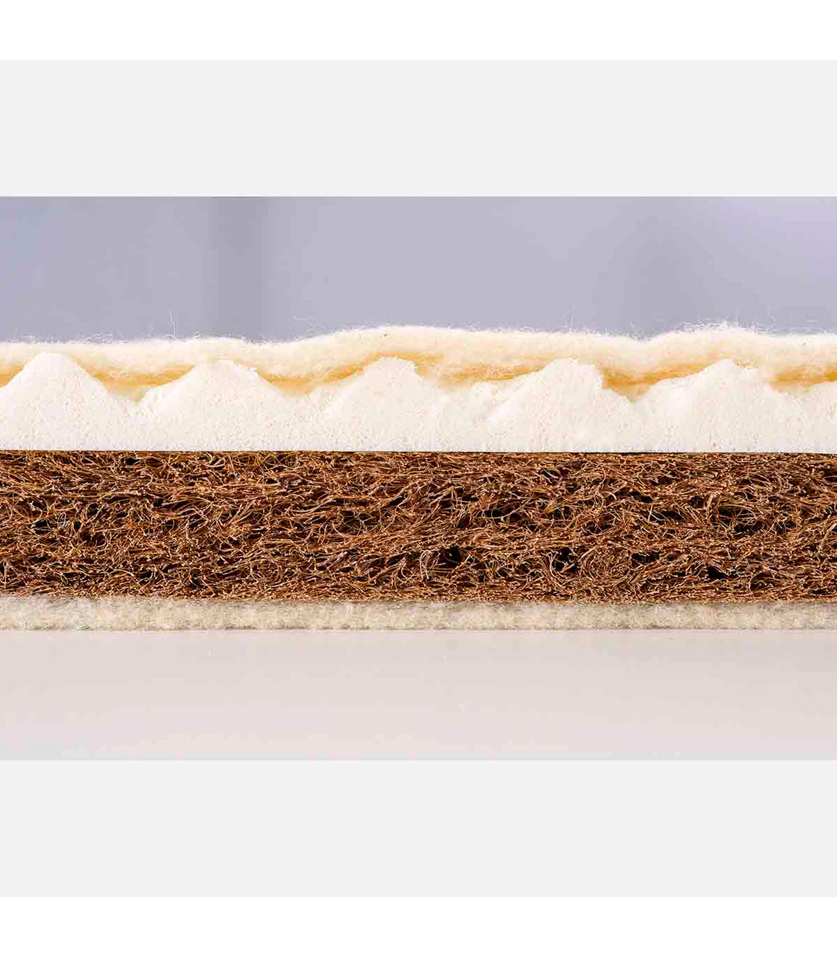 Matelas en coco avec latex naturel de haute qualité composé de matériaux 100 % biologiques - testé et certifié.