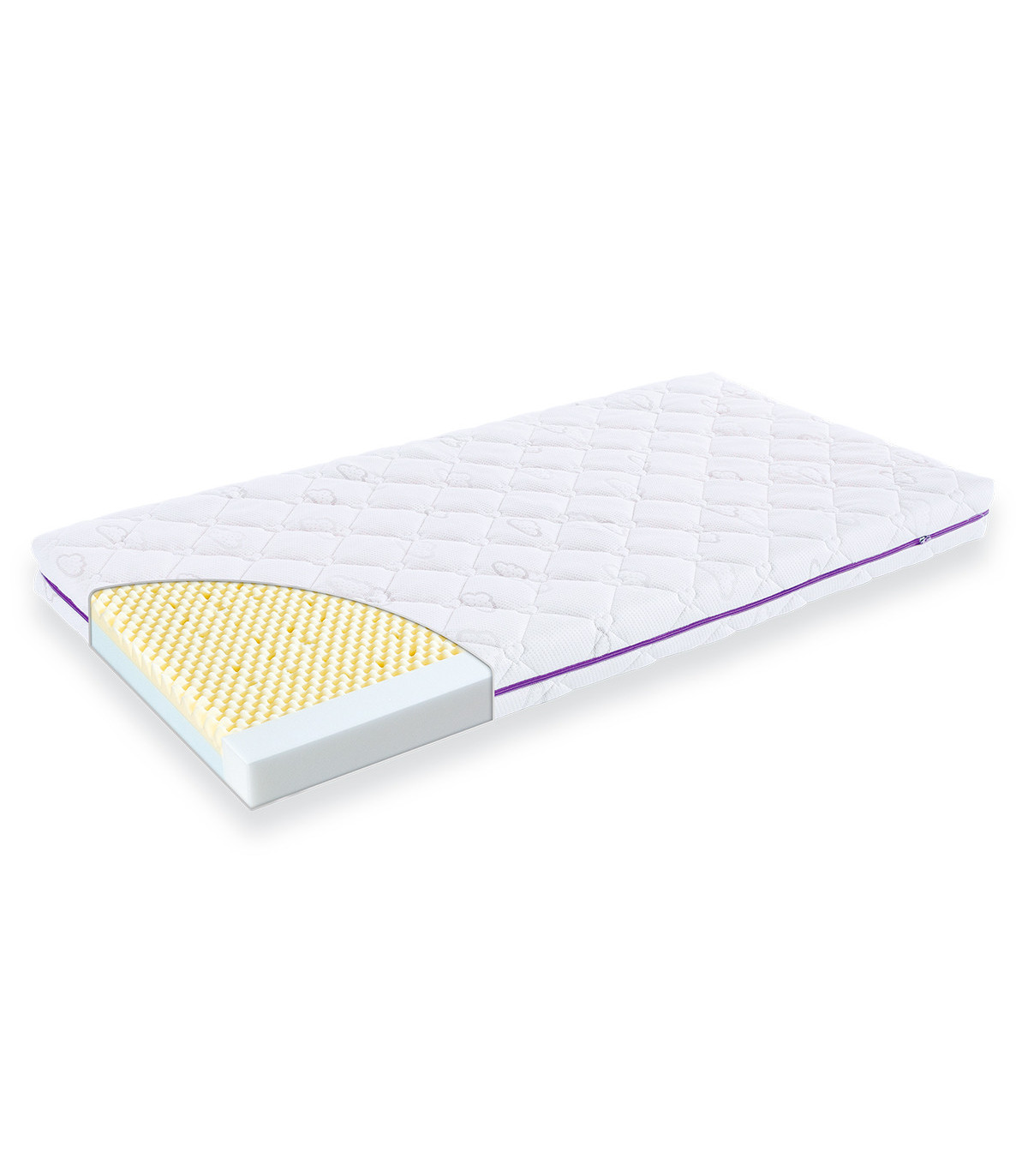 Matelas pour bébé avec structure à picots dans le noyau en mousse froide pour un bon confort de couchage.