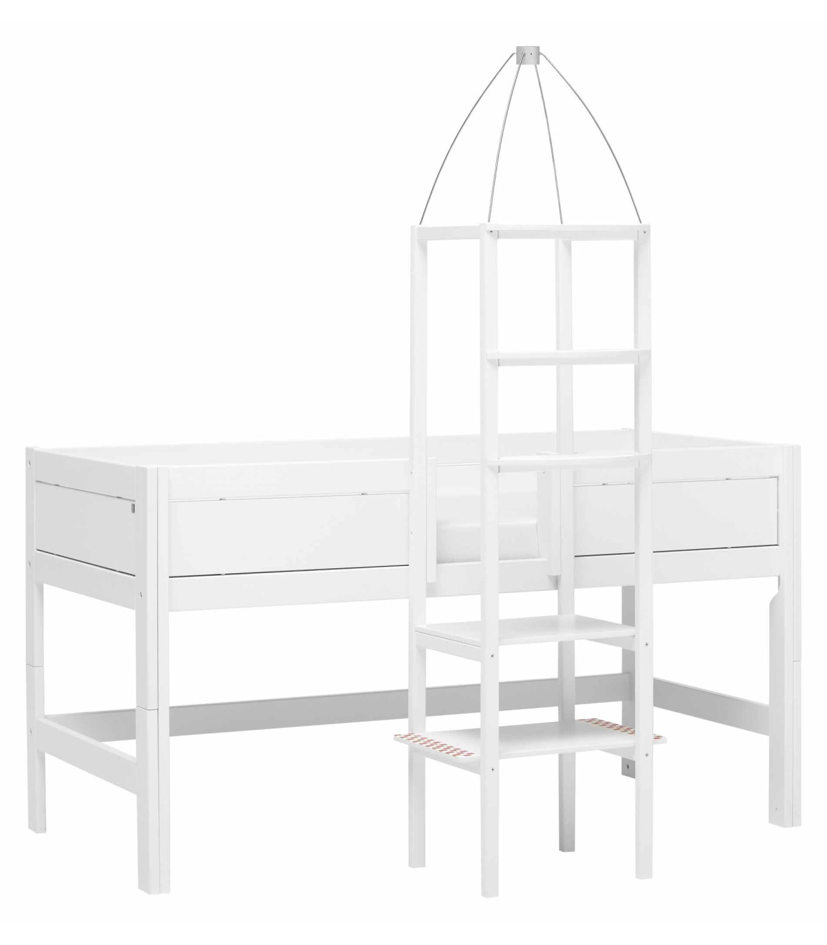Lifetime Minihochbett mittige Leiter + Turm / Rollboden Weiss Lackiert