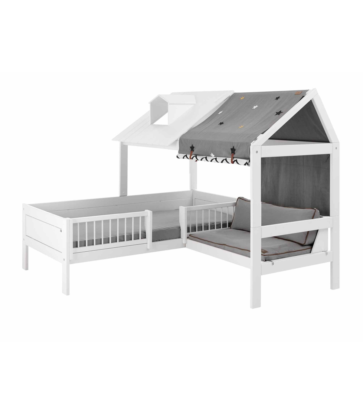 La tenda da sole Among the Stars si adatta alla costruzione del tetto. Questo può facilmente trovare un posto accanto a una sezione del tetto della Beachhouse o essere posizionato 2 volte l'uno accanto all'altro. Questo ti permette di simulare un'atmosfera da casa vacanza nella natura soleggiata, come se fossi in vacanza. La gamma di Among the Stars comprende anche cuscini e tende in abbinamento colore e motivo.