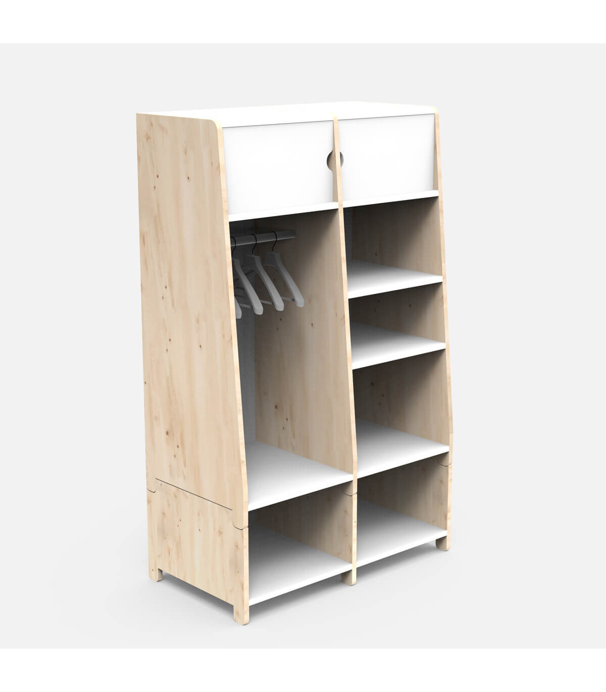 Basata sulla pedagogia attiva sviluppata da Maria Montessori, Asymetry aiuta a sviluppare l'autonomia e le capacità motorie dei bambini fin dalla più tenera età, offrendo mobili progressivi adattati all'altezza del bambino. Questa collezione è composta da un armadio, uno scaffale e una scrivania. Il bambino può accedere ai propri beni e prendere decisioni in autonomia.