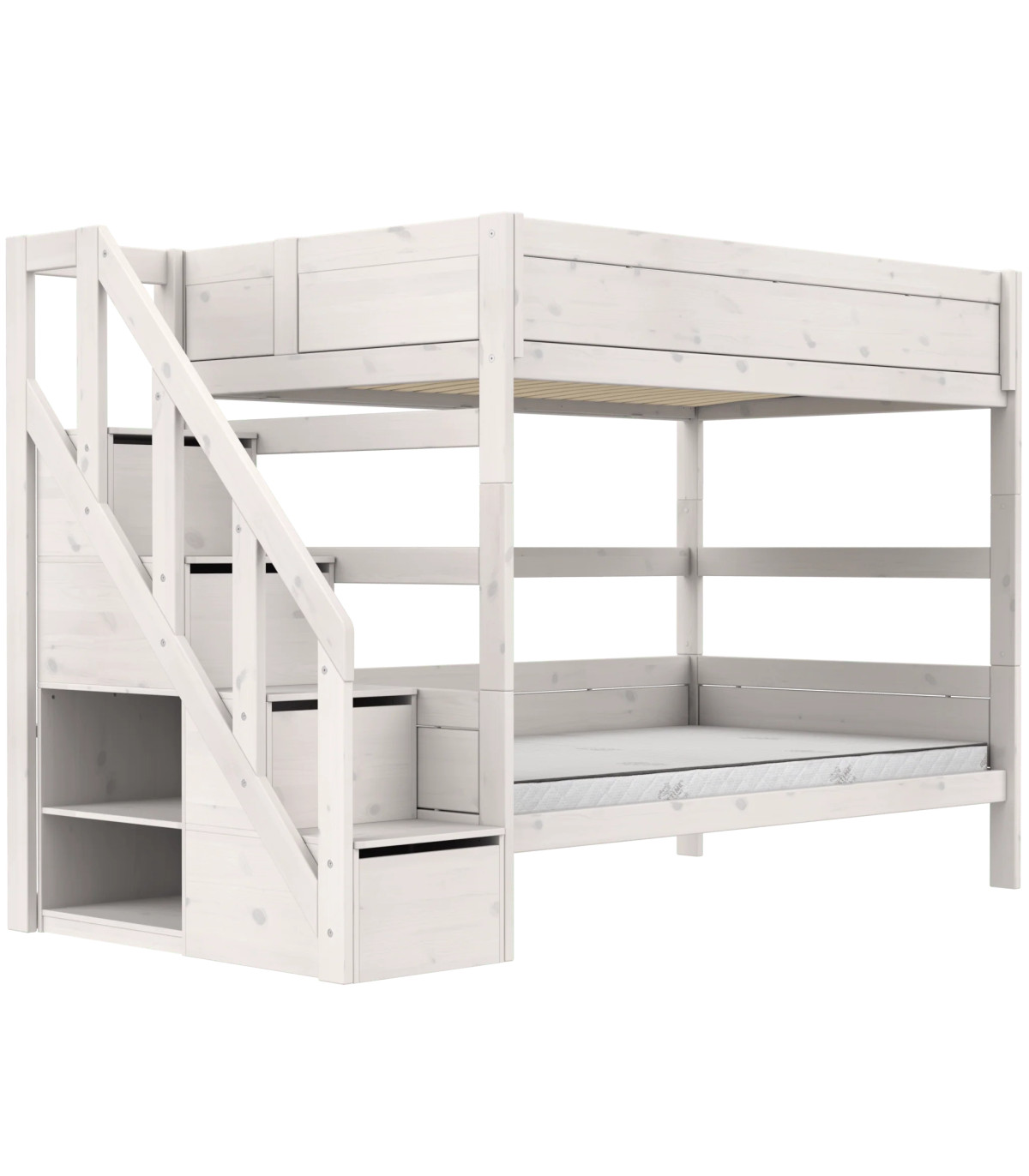 La soluzione del letto a castello è una soluzione intelligente, salvaspazio e funzionale se due bambini condividono una stanza o semplicemente amano dormire insieme. Con la scala dritta, occupa uno spazio minimo in qualsiasi stanza.