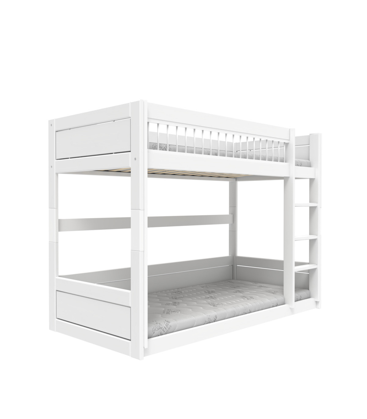 Letto a castello basso con scaletta dritta Lifetime 120 x 200 cm telaio a doghe deluxe bianco