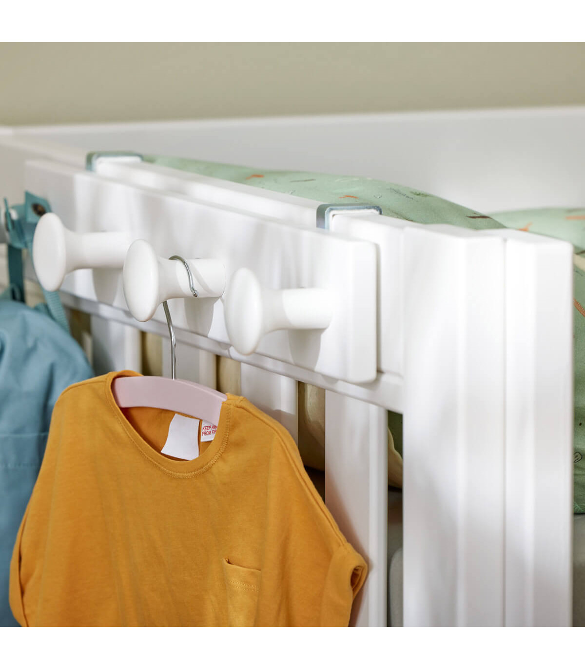 Le sponde del letto con doghe in legno creano un'apertura che consente all'aria fresca di raggiungere il materasso e il copripiumino, proteggendo al contempo il bambino da eventuali cadute.
