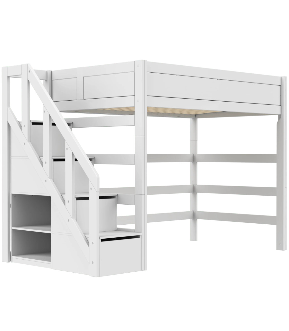 Letto a soppalco Lifetime Kidsrooms 120 cm, con scala, rete a doghe Deluxe con 28 stecche, bianco