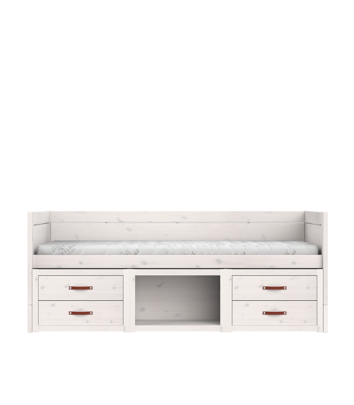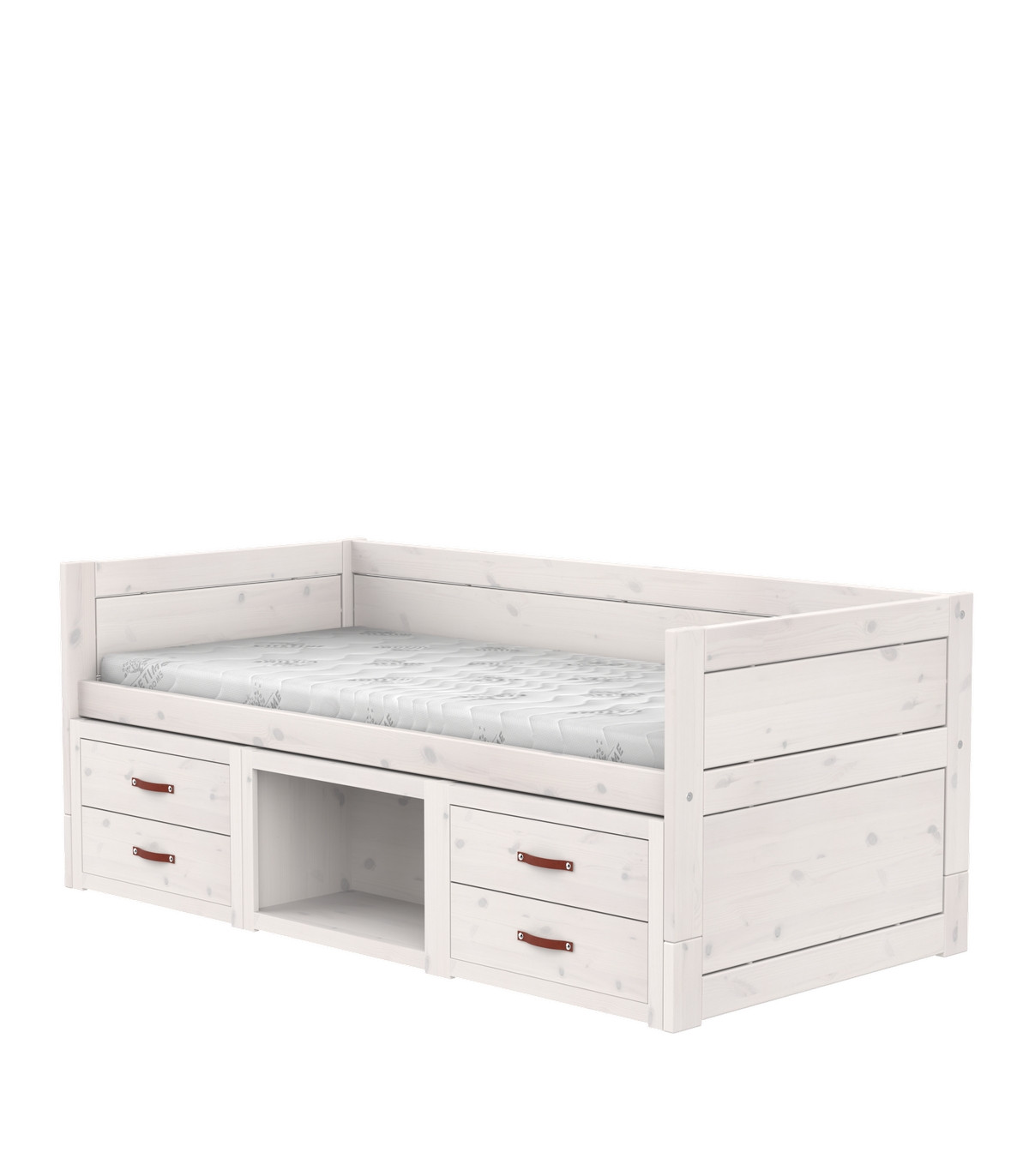 Scoprite il letto a castello Lifetime, elegante e funzionale, che non solo offre un accogliente spazio per dormire per il vostro bambino, ma fornisce anche soluzioni di stoccaggio ben progettate. Con la sua raffinata finitura whitewash, questo letto si integra armoniosamente in qualsiasi cameretta, creando un'atmosfera luminosa e accogliente.