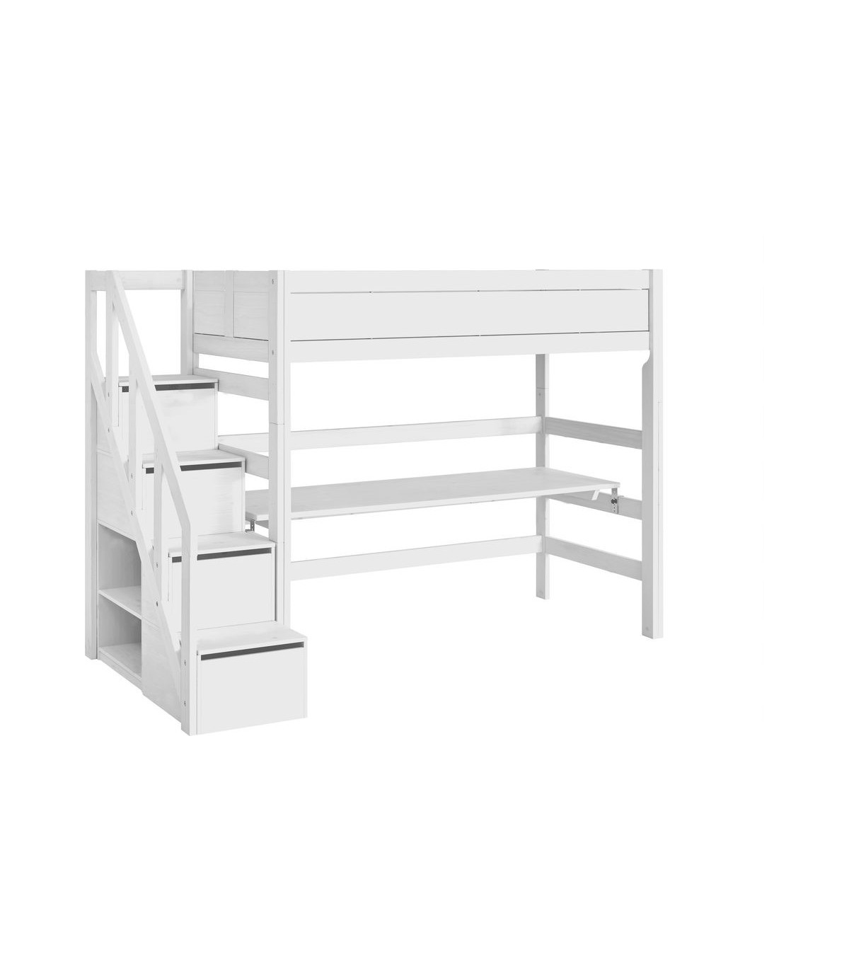 Letto a soppalco Lifetime con scale e struttura a doghe deluxe bianca