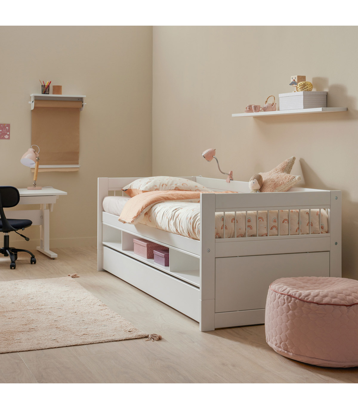 Questo letto per bambini fa parte con orgoglio dell'ultima collezione BREEZE di LIFETIME Kidsrooms. Il suo design aperto con griglia sia sul retro che sui lati del letto gli conferisce un aspetto leggero e giocoso, perfetto per qualsiasi camera da letto per bambini.