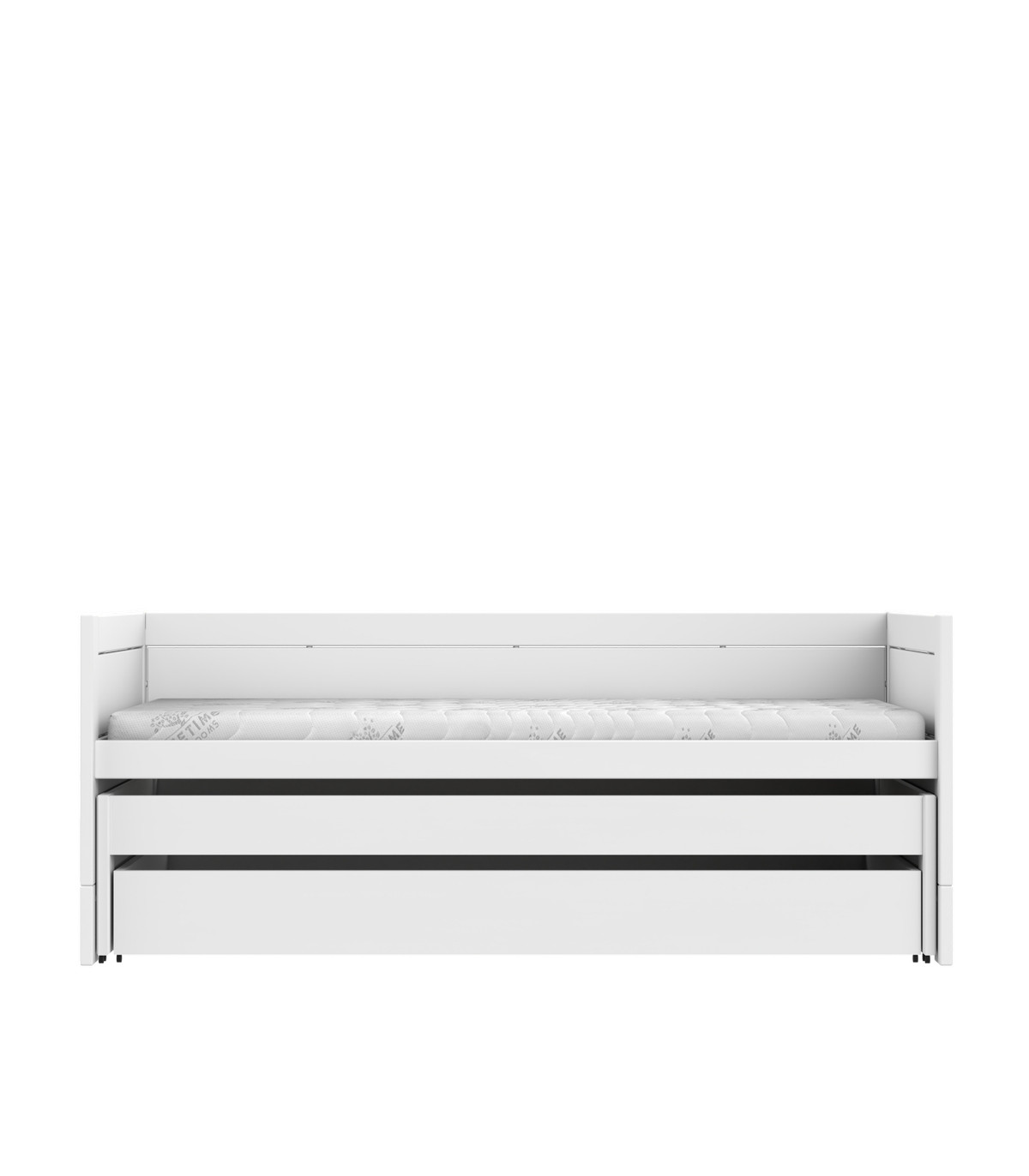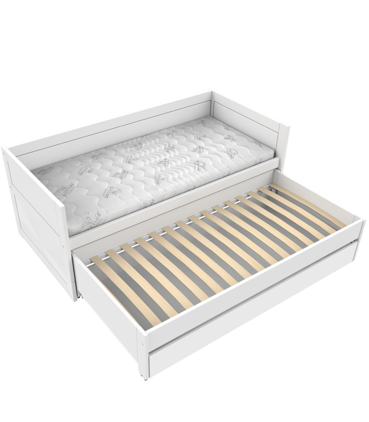 Letto a castello Lifetime 90x200 con letto per gli ospiti e cassetto, struttura a doghe deluxe in bianco