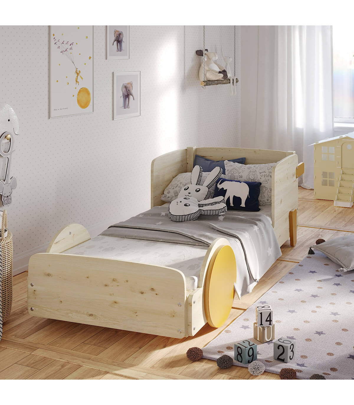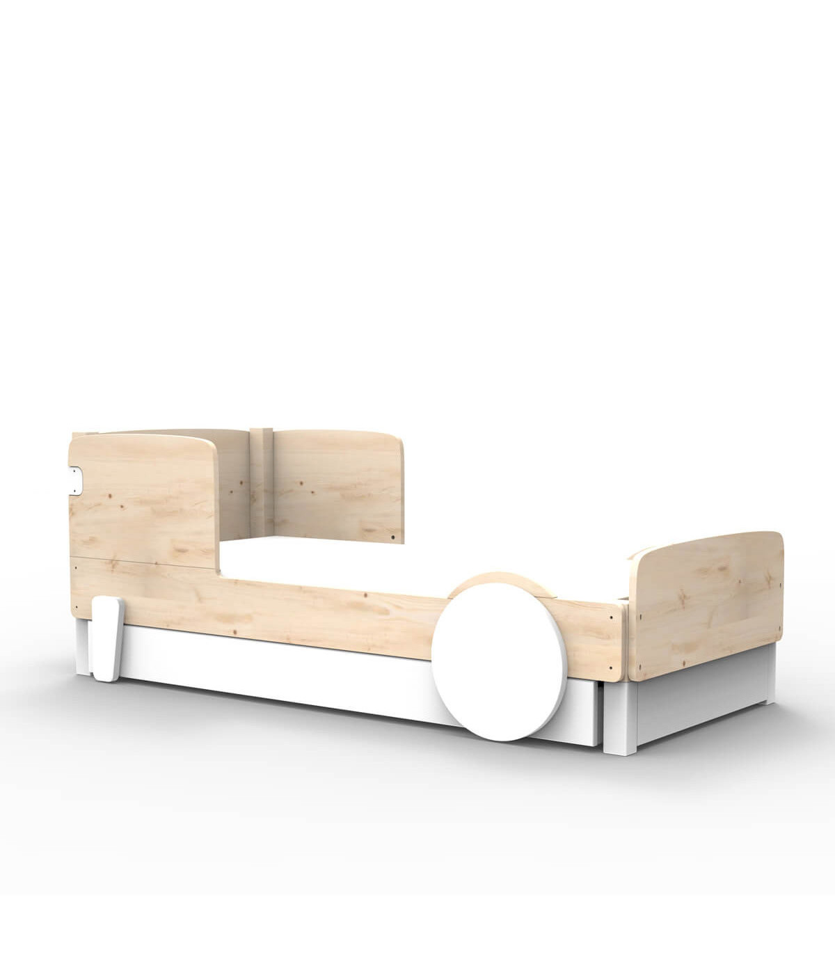 Il lettino Discovery offre uno spazio bozzolo dove il bambino può accoccolarsi e addormentarsi sentendosi protetto. Inoltre, nella parte anteriore del letto è presente un ripiano dove è possibile collocare una luce nelle vicinanze. Accanto al letto c'è anche un box per riporre i peluche. Tutto è pensato per aiutare il bambino a fare del suo letto il suo spazio, il suo bozzolo, la sua casa.