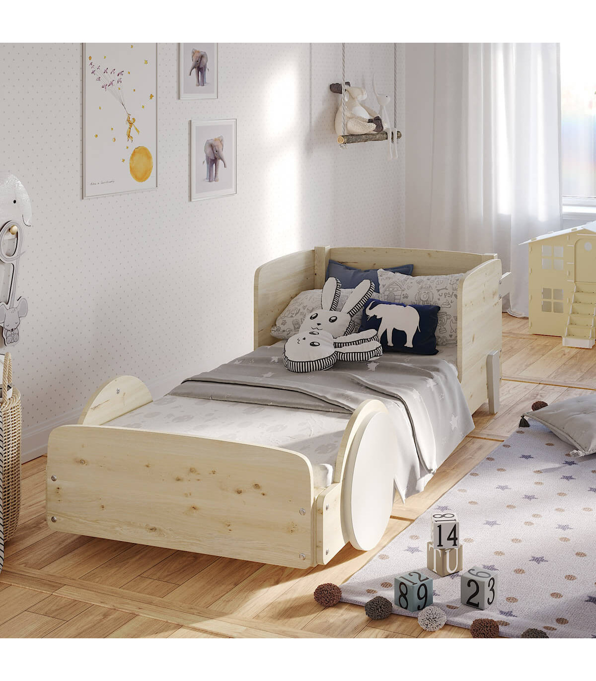 Il letto Discovery fa parte della pedagogia attiva sviluppata dalla Montessori. Il letto, vicino al suolo, permette al bambino di imparare da solo, facendogli esplorare l'ambiente, sviluppando così le sue capacità motorie. In questo modo, scendendo facilmente dal letto, il bambino può andare e venire in modo indipendente e scoprire il mondo che lo circonda. In abete massiccio e MDF (E1), laccato a colori o laccato a colori + vernice o grezzo da verniciare.