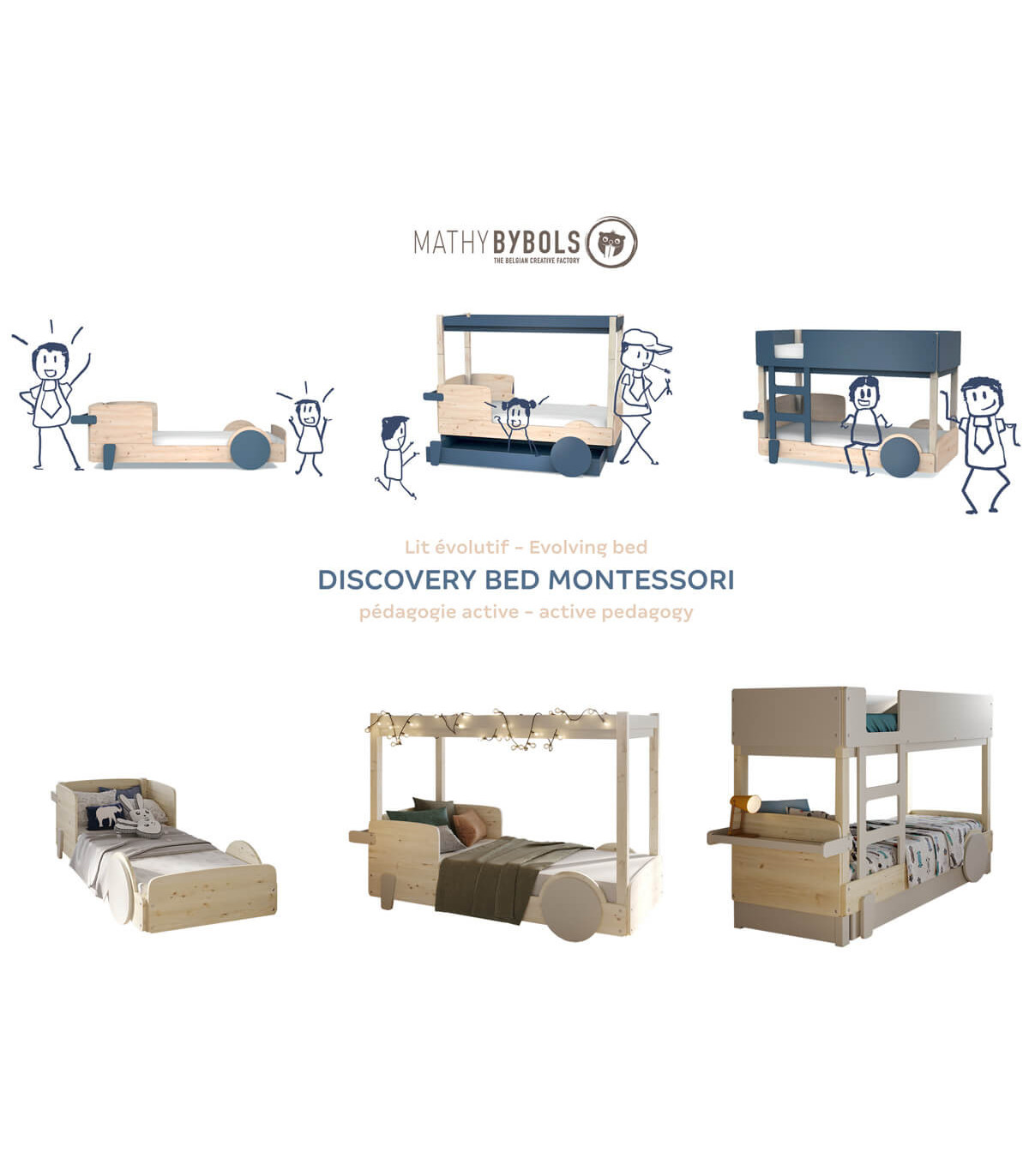 Nell'idea di una pedagogia attiva, incentrata sulla pedagogia montessoriana, il bambino scopre da solo il suo ambiente, la sua stanza, e può lasciare il suo letto a suo piacimento o andarci quando si sente stanco. Il letto Discovery è accessibile fin dalla più tenera età.