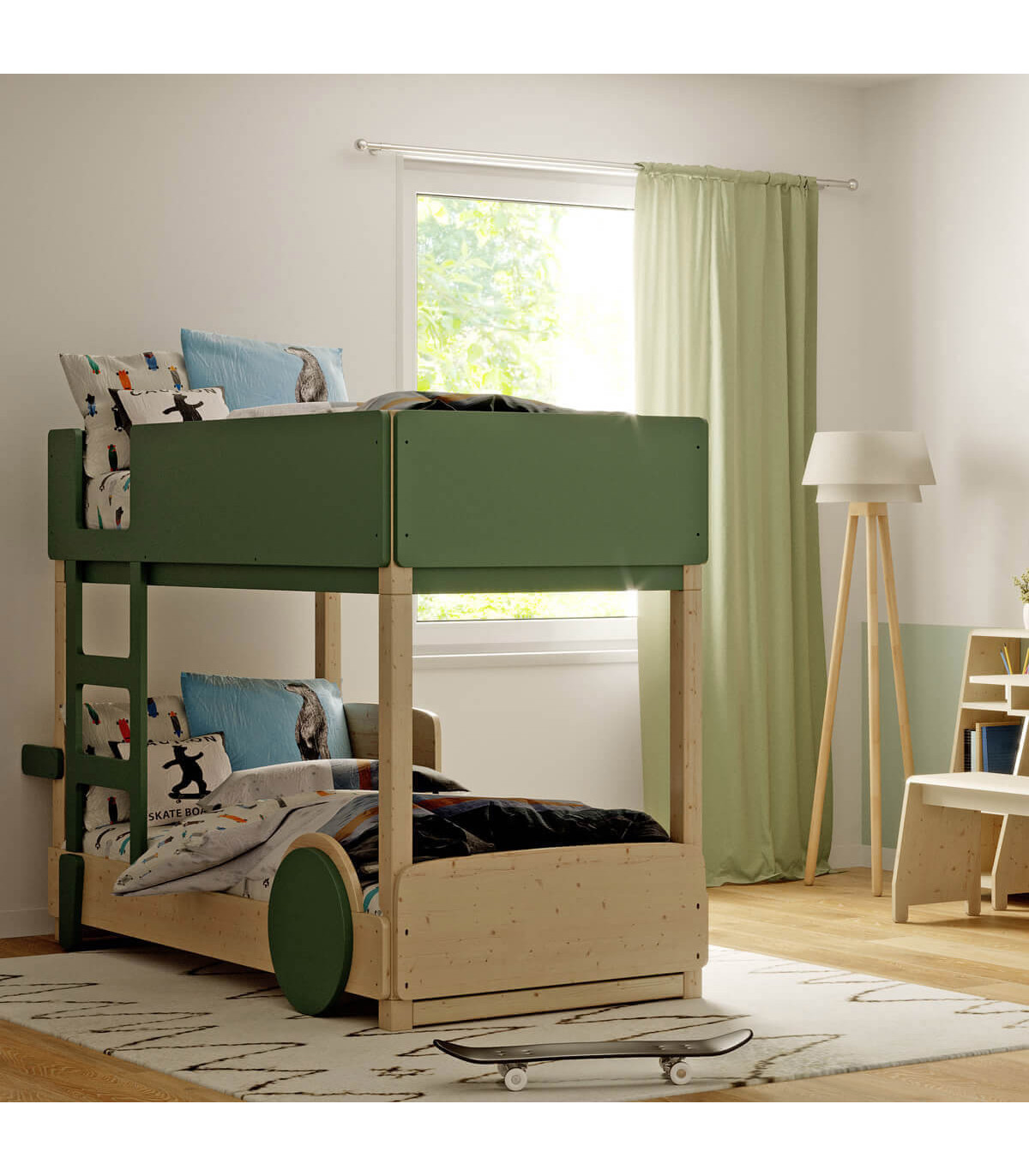 Il letto Discovery si evolve e accompagna la crescita del bambino. Dal letto trasformabile ai letti a castello e al baldacchino, Discovery è un letto in continua evoluzione che si adatta alle esigenze del bambino e dei genitori. Inoltre, può essere sollevato a un'altezza più tradizionale e ospitare un cassetto del letto. Questo modello originale permette al bambino di scoprire il mondo creando il proprio. Gli elementi del disegno suggeriscono il movimento, ma sono liberi di essere interpretati. Il letto Discovery può essere associato a un mezzo di locomozione e alla bancarella del venditore ambulante o del gelataio. Tutti i sogni sono ammessi...