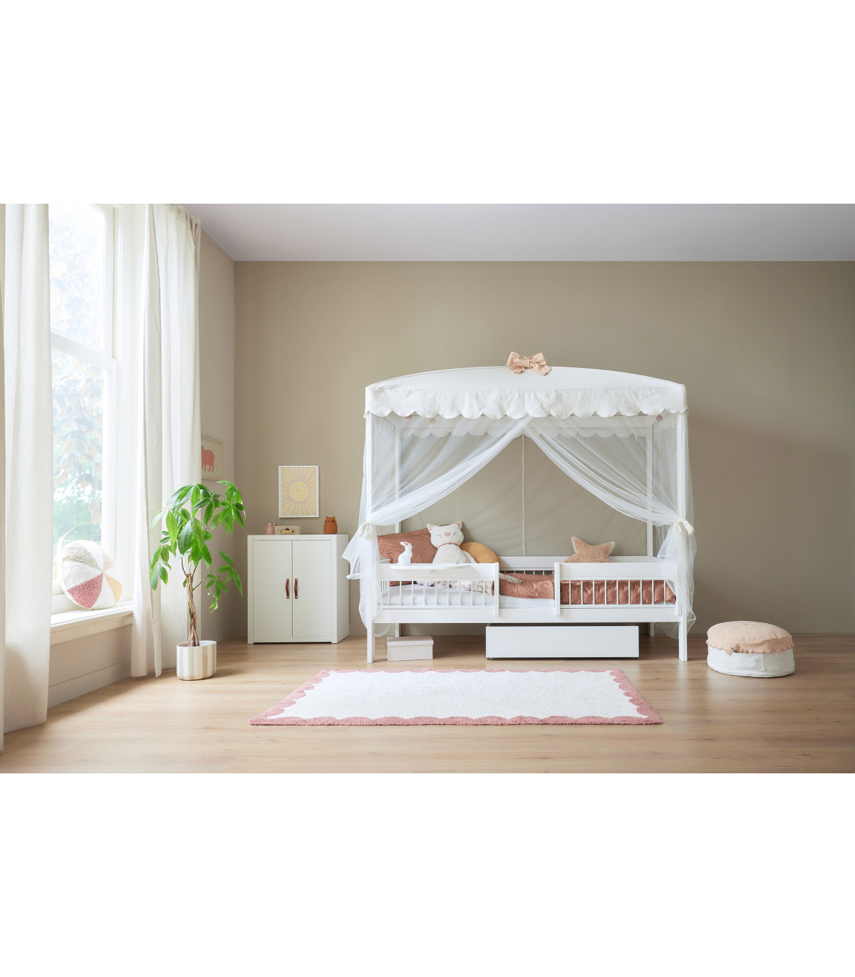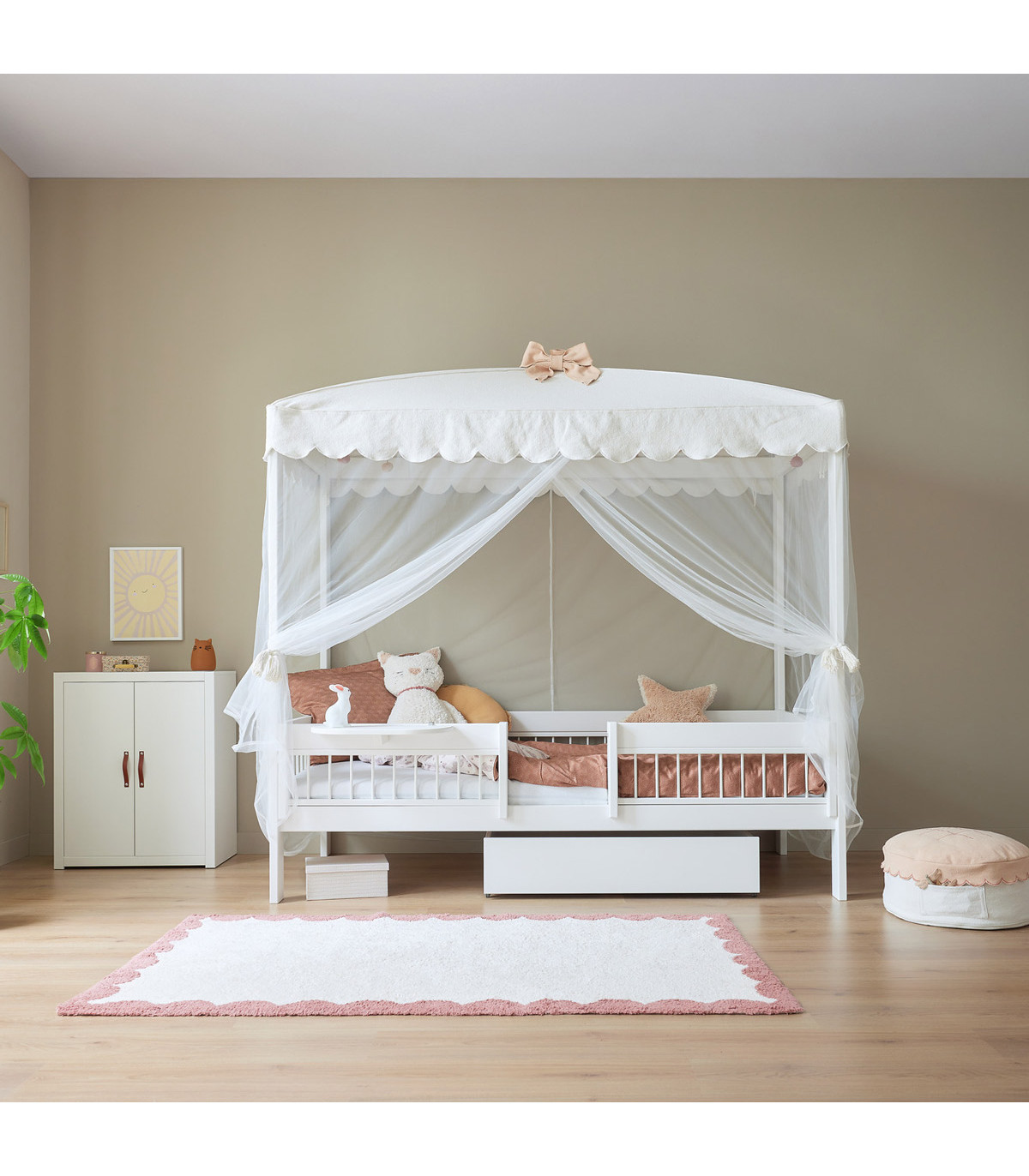 Scoprite l'incantevole Lettino Singolo Lifetime con Baldacchino Cat & Bow, non solo funzionale ma anche un vero e proprio richiamo visivo in ogni cameretta. Con le dimensioni di 90 x 200 cm, questo letto offre ampio spazio per dolci sogni e notti accoglienti. Il design aperto della collezione LIFETIME BREEZE, combinato con barre metalliche bianche, conferisce al letto un aspetto leggero e giocoso, perfetto per ogni cameretta.
