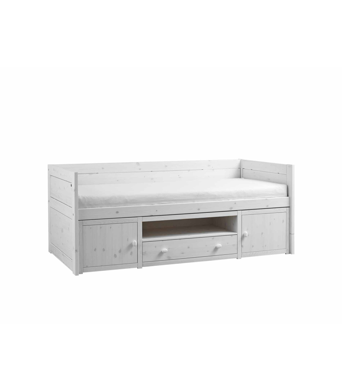 Il letto a castello è l'ideale se si desidera avere ulteriori opzioni per lo spazio di archiviazione o soluzioni di letto per gli ospiti a bassa altezza di sonno. Nell'area sotto il letto c'è spazio sufficiente per posizionare 3 ripiani art. 8005, che possono essere dotati di porte o pulsanti o per la soluzione letto per gli ospiti con scatola da letto art. 7040 + 7042. Un'altra opzione è quella di posizionare la tavola da corsa e scivolare con protezione anticaduta in mezzo. Art. 174 + 172 + 4621. Se vuoi un tetto o un cielo sopra il letto, questo è possibile anche qui.