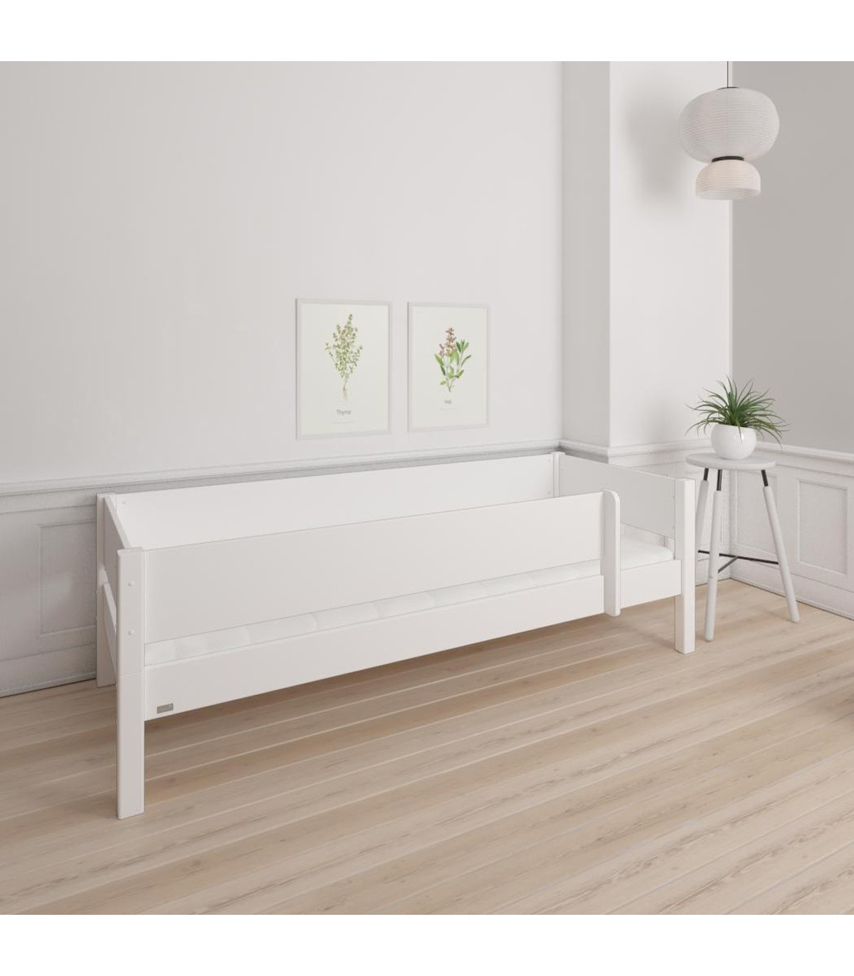 Bella culla con testa e piede, telaio a doghe e protezione anticaduta posteriore, gamba + protezione anticaduta 3/4 Vuoi una stanza con un letto pratico e un bel design scandinavo? Dormi bene e in sicurezza! Questo letto è dotato di protezione anticaduta 3/4, quindi il bambino che è ancora troppo piccolo per il letto aperto è sempre al sicuro. Il letto è intercambiabile – dal letto al letto a mezza altezza, al letto a castello e al letto a soppalco – Una culla semplice e pratica che può essere rimossa in seguito se le esigenze del bambino sono soddisfatte.