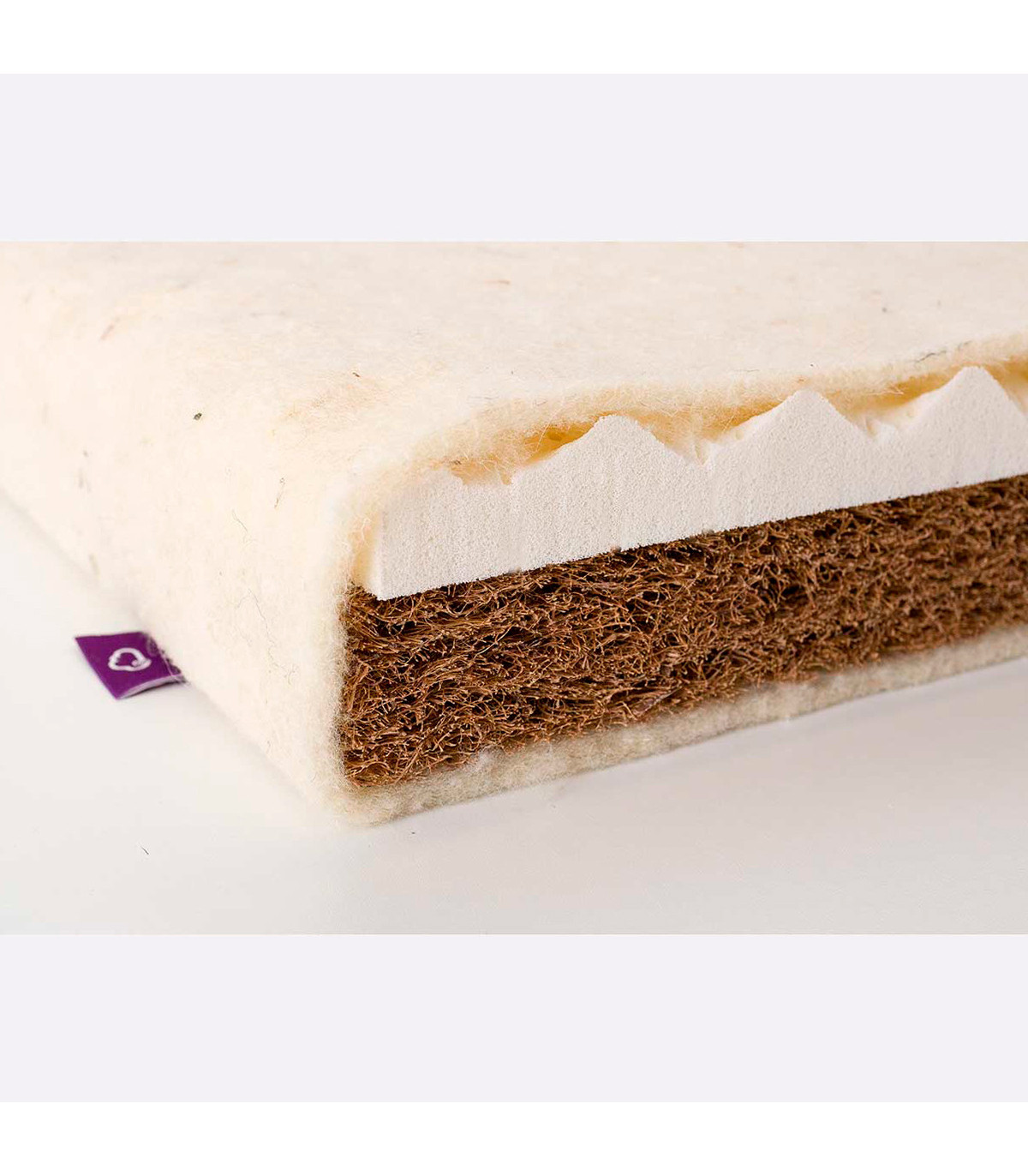 Materasso in cocco con lattice naturale di alta qualità realizzato con materiali biologici al 100% - testati e certificati.