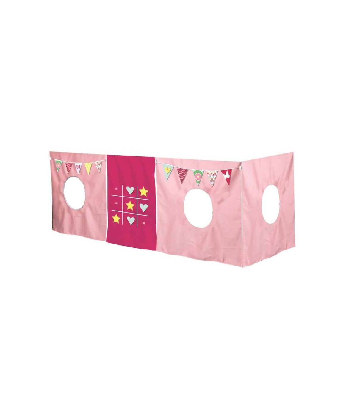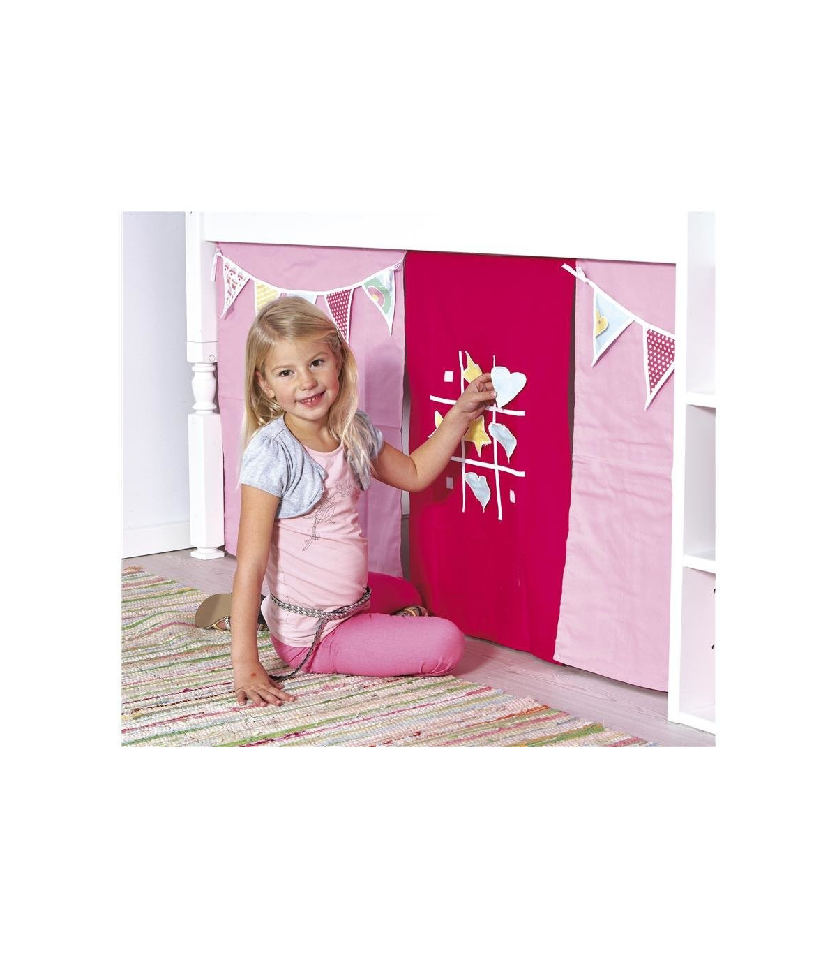 Tenda in rosa e rosa con gioco TicTacToe. Segnala le viti che possono decorare la stanza. La parte interattiva consiste nello spostare le tessere e giocare con cross & ball.